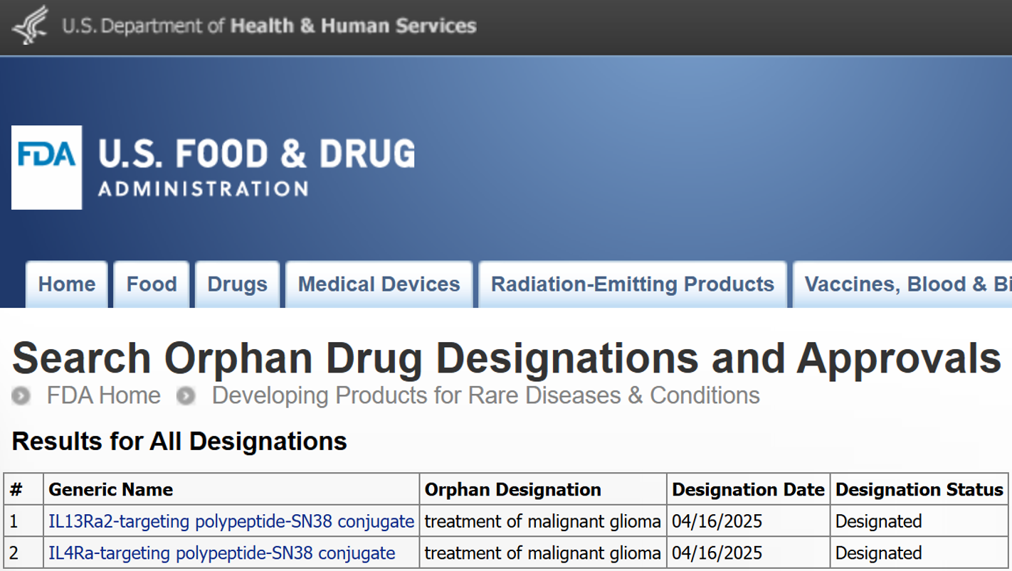 U.S. FDA grants Orphan Drug Designation to Excellamol’s two leading OncoPDCs for the treatment of malignant glioma! (Apr. 16, 2025)
